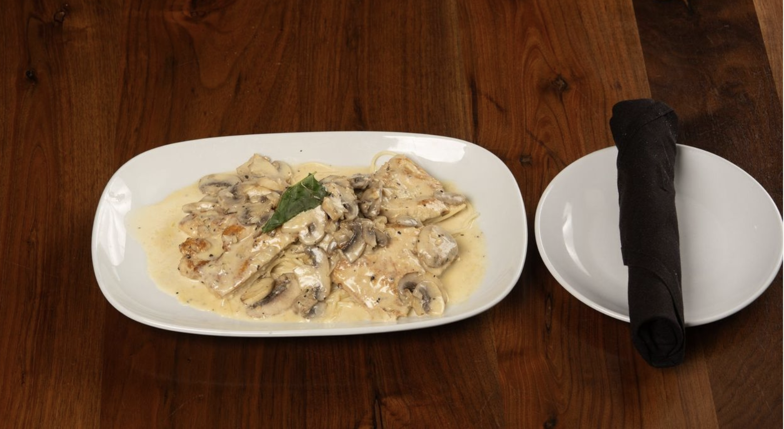Sautéed with garlic and mushrooms in a brandy cream sauce served over spaghetti